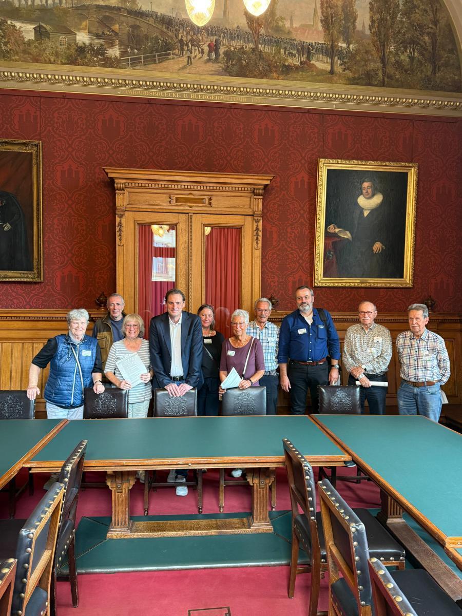 Anlässlich der gestrigen Bürgerschaftssitzung hatten wir wieder eine Besuchergruppe aus dem Wahlkreis im Rathaus zu Gast. Nach einer Führung durch das historische Gebäude und einem Info-Film konnte ich eine halbe Stunde mit meinen Gästen über aktuelle Themen sprechen. Dabei ging es sehr angeregt zu, u. a. über sportpolitische Themen wie die Olympia-Bewerbung und die Situation der Lehrschwimmbecken, aber auch Stadtteil-Themen wie den Ausbau der AKN-Strecke zur neuen S5 über Schnelsen.