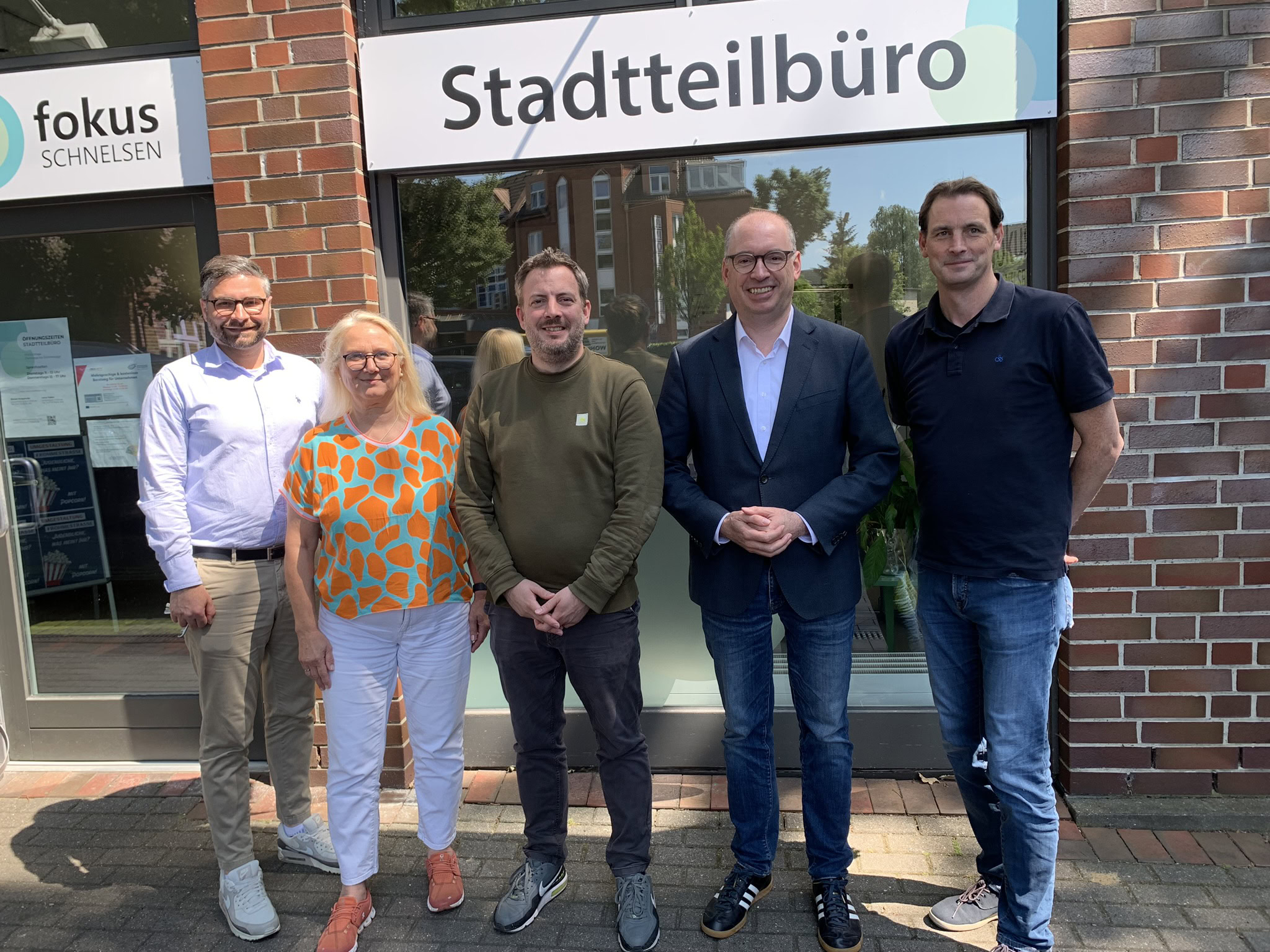 In Schnelsen-Burgwedel konnten wir mit Vertreterinnen und Vertretern der örtlichen Einrichtungen – Kinder- und Familienzentrum, Spielhaus Sara Goldfinger und Jugendclub Burgwedel – über die Arbeit und Herausforderungen in ihren Einrichtungen, Entwicklungen im Quartier sowie Chancen und Erwartungen an das RISE-Förderprogramm sprechen.