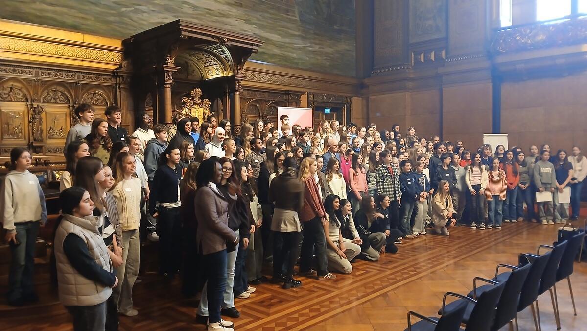Und dort hatte unsere SPD-Fraktion ein tolles Programm organisiert: Zusammen mit über 150 weiteren Kindern und Jugendlichen aus diversen Abgeordnetenbüros wurden sie zunächst im großen Festsaal von unserem Fraktionsvorsitzenden Dirk Kienscherf begrüßt.