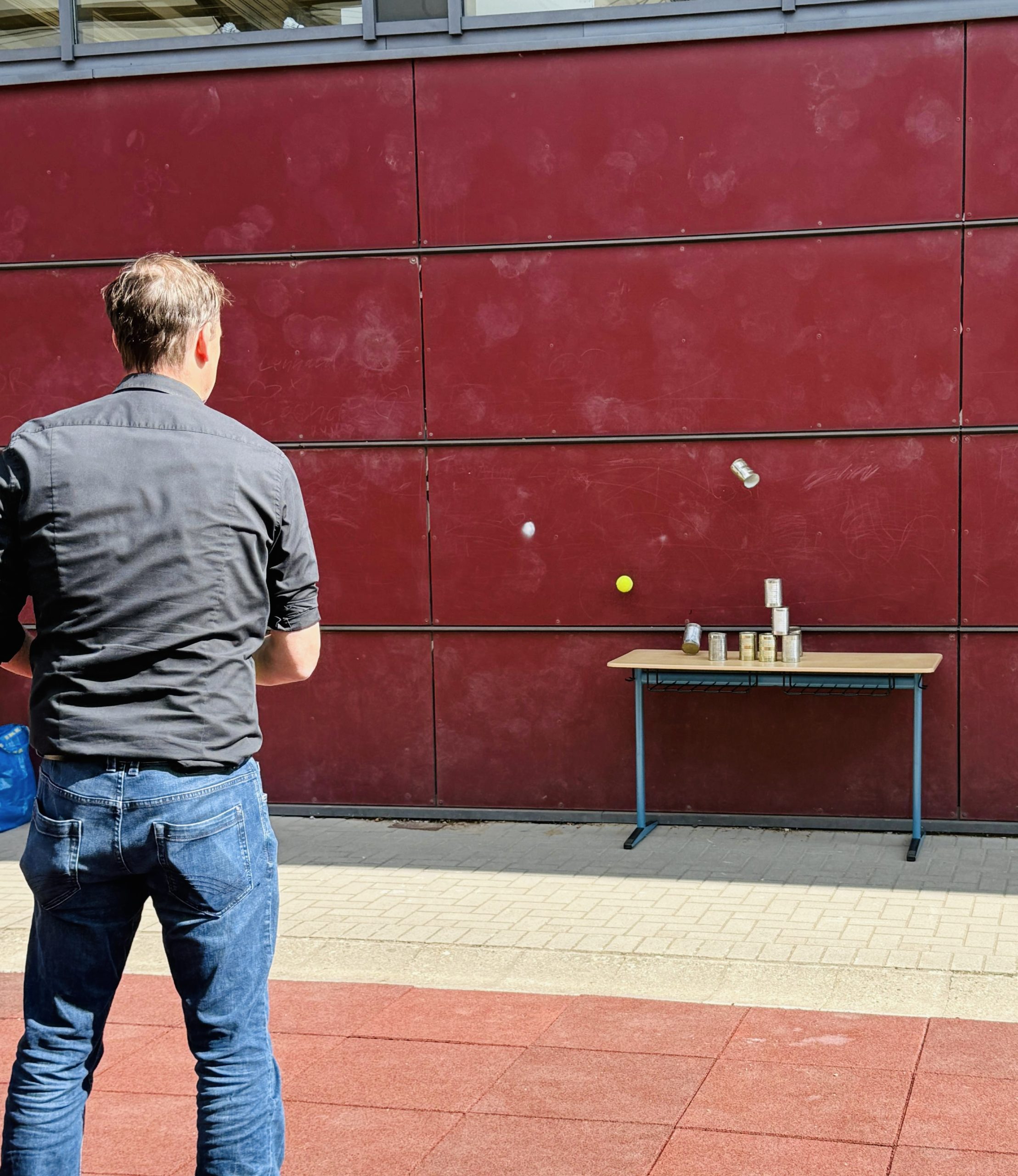 Das wurde auch gleich von den anwesenden Schülerinnen und Schülern rege genutzt, ebenso wie die weiteren Spiel-Angebote wie Dosenwerfen oder Wikinger-Schach, die zur Eröffnungsfeier angeboten wurden. Da durfte ich dann natürlich auch gleich mitmachen…
