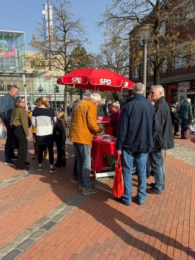 Vier Tage später waren wir dann wieder auf dem Tibarg im Einsatz, bei unserem Infostand stand der Weltfrauentag im Mittelpunkt, der am 8. März gefeiert wird.