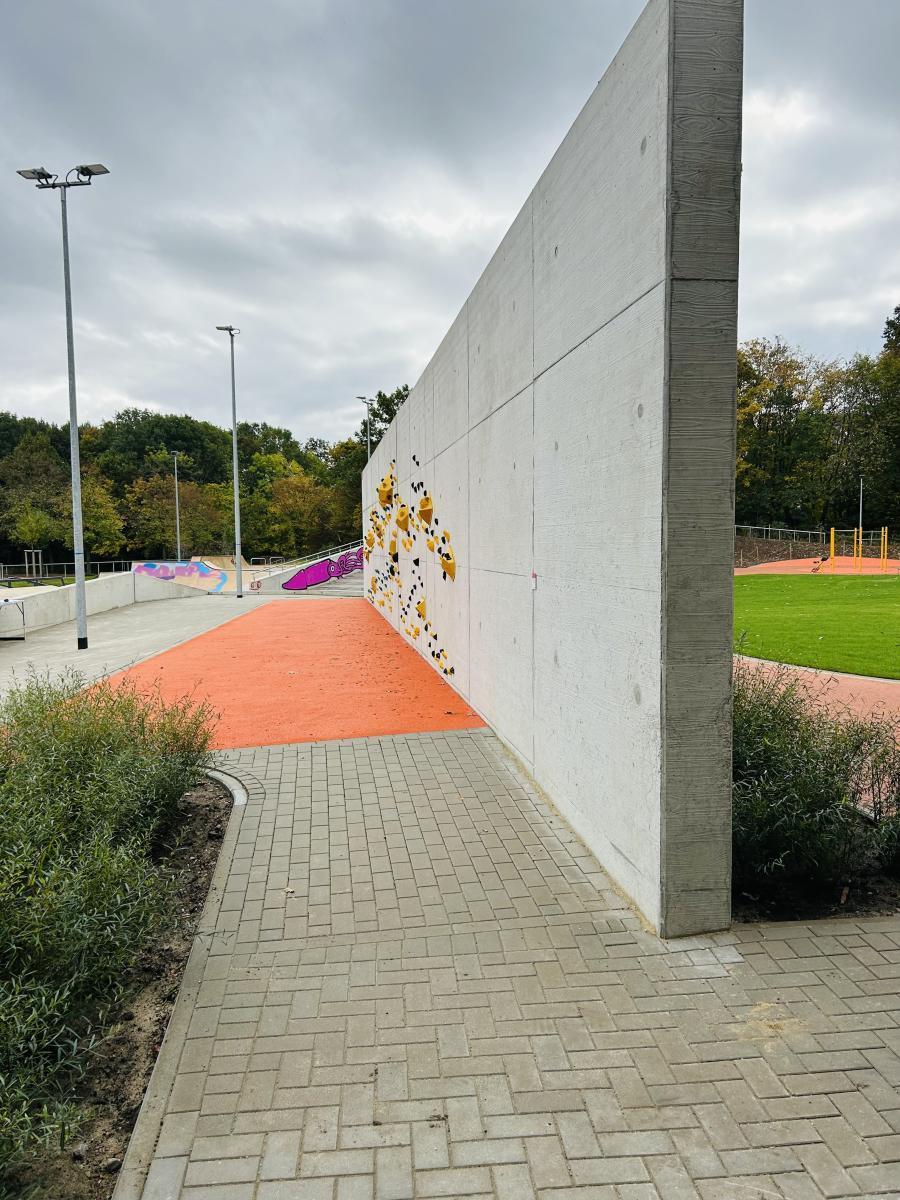 Zudem wurden eine Gymnastikwiese mit Rundlaufbahn, einer Boulderwand, Fitnessgeräten und eine Parkour-Anlage geschaffen.
