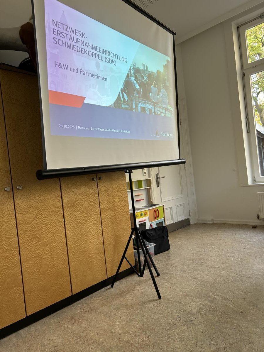 Beim Runden Tisch wurde zudem das Netzwerk der Erstaufnahme Schmiedekoppel präsentiert, und am Rande konnten wieder viele gute Gespräche mit den Vertreter/-innen der unterschiedlichen Einrichtungen aus unseren Stadtteilen geführt werden.