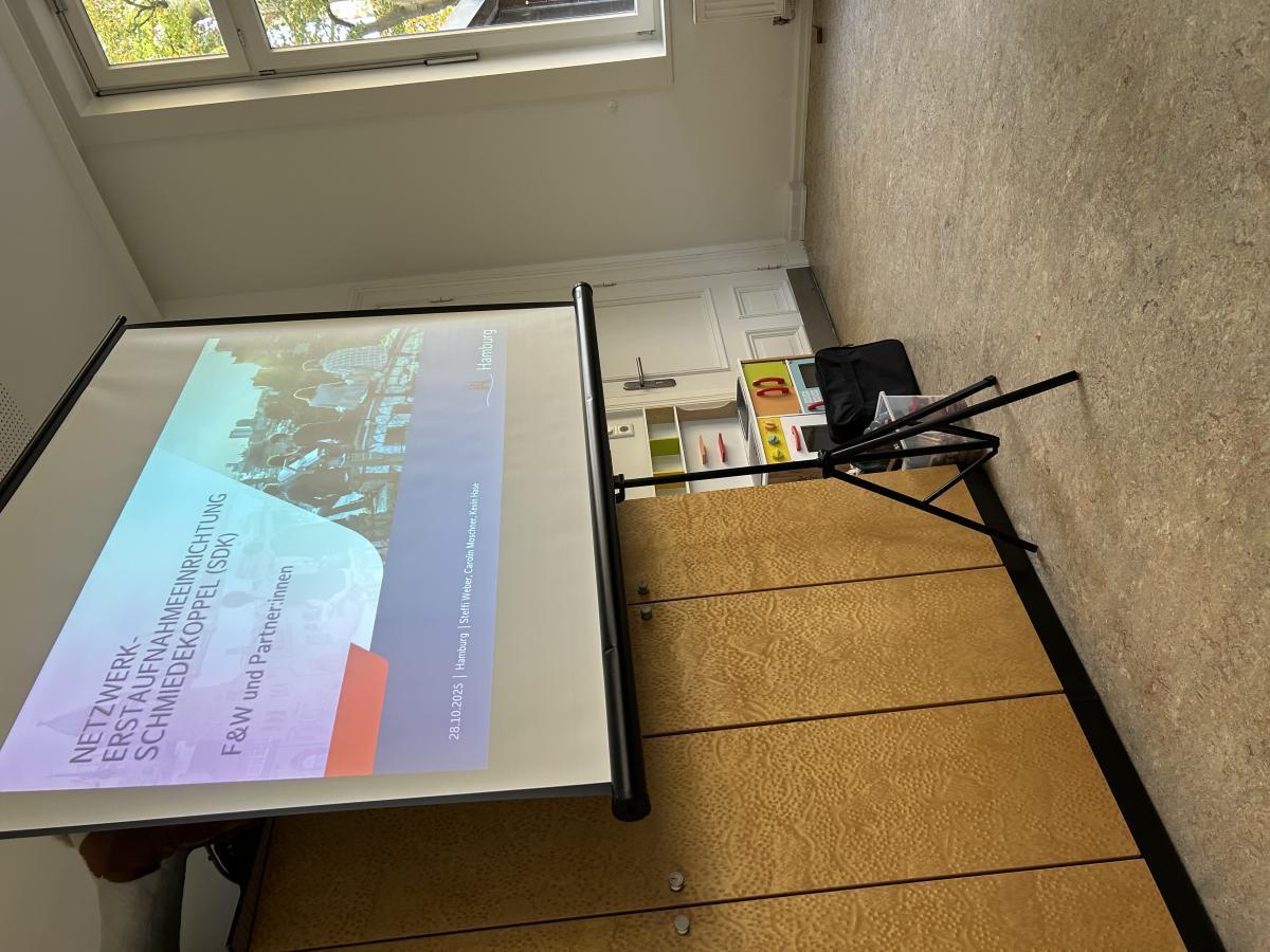 Beim Runden Tisch wurde zudem das Netzwerk der Erstaufnahme Schmiedekoppel präsentiert, und am Rande konnten wieder viele gute Gespräche mit den Vertreter/-innen der unterschiedlichen Einrichtungen aus unseren Stadtteilen geführt werden.