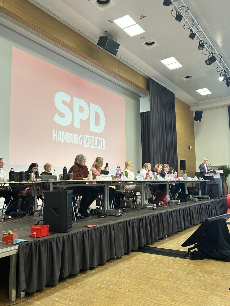 Heute ging es zum Landesparteitag der SPD Hamburg nach Wandsbek. Mit rund 300 Delegierten wurde in der Beruflichen Schule für Medien und Kommunikation über ein umfangreiches Antragspaket mit Initiativen zu nahezu allen Politikfeldern debattiert, die in den Distrikten, Kreisen und Arbeitsgemeinschaften erarbeitet wurden.
