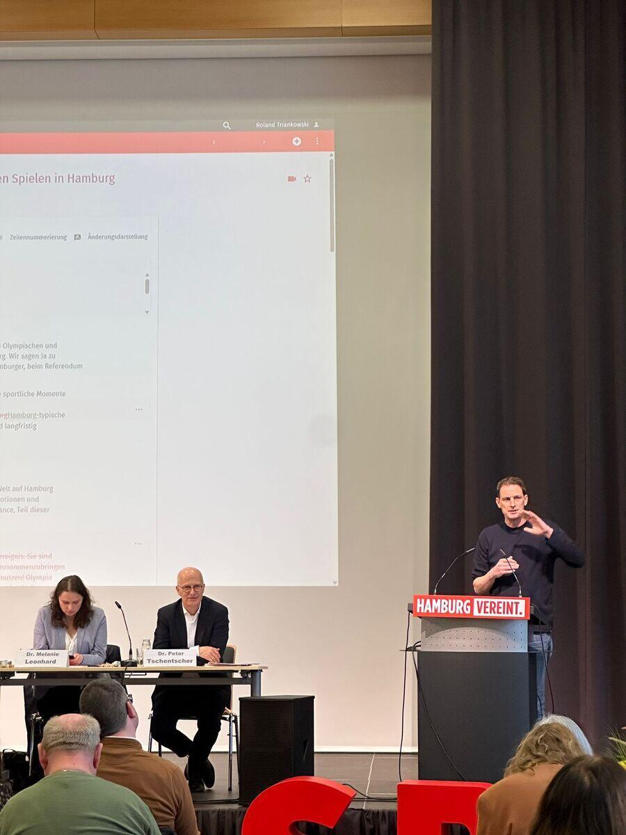Unser Bürgermeister Peter Tschentscher betonte in seiner Rede, dass Olympische und Paralympische Spielen eben nicht nur einen Gewinn für Sport und Tourismus sein dürfen, sondern dass es auch darum gehe, in den schnelleren Ausbau von U- und S-Bahnen und des Hauptbahnhofs zu investieren, Nachhaltigkeit und Barrierefreiheit weiter zu fördern, und in der Stadt Bewegung, Gesundheit und Teilhabe noch mehr in den Mittelpunkt zu stellen.